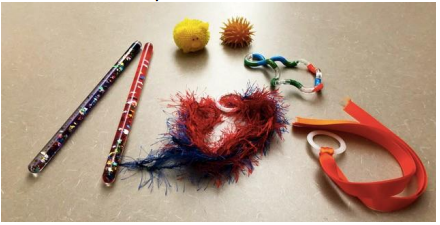Calm-down kits can include any toys or items that help children process feelings. Some examples include books, feeling cards, and sensory materials (i.e., stuffed animal, molding sand, sensory bottle). For more ideas on what to include in the kit check out this website or see the attached PDF.